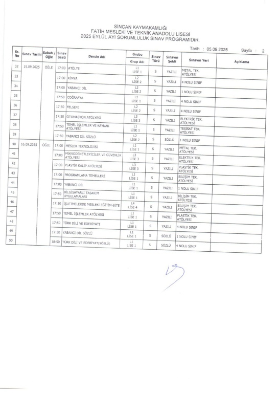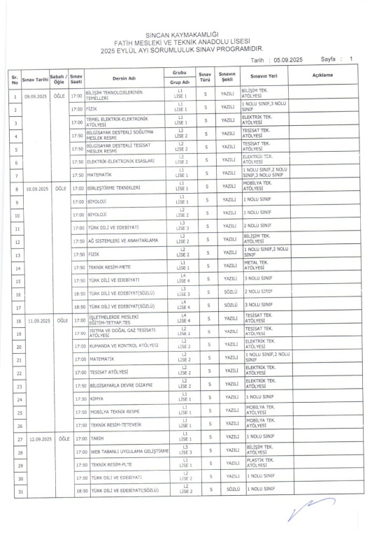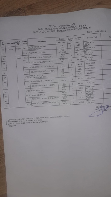 2025 Eylül ayı sorumluluk sınavları aşağıda paylaşılmıştır. Öğretmen ve öğrencilerimizin dikkatine.